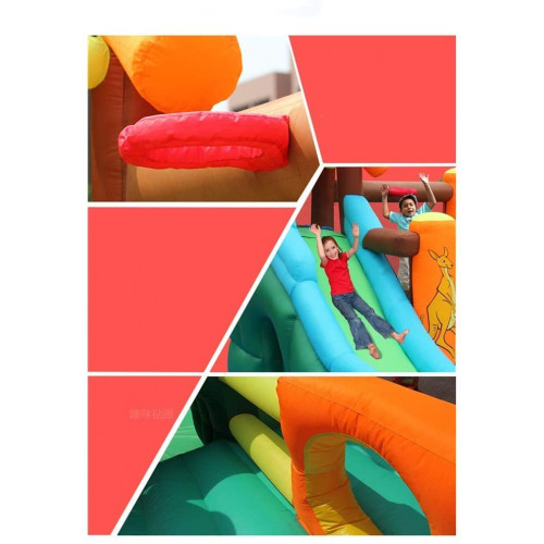 • * Este castillo inflable está hecho de material oxford duradero y de alta calidad, que es duradero, impermeable y no tóxico; no se preocupe, los saltos excesivos acortarán la vida útil del castillo hinchable; es muy seguro para sus hijos jugar en este castillo hinchable.
