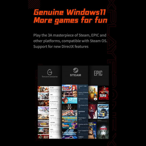 Especificaciones: Material: ABS + Componentes electrónicos + Metal Sistema: Win 11 CPU: AMD R7 6800U, arquitectura ZEN3+, 8 núcleos/16 hilos, frecuencia máxima de 4,7 GHz GPU: AMD Radeon 680M, arquitectura de GPU RDNA2, 12 núcleos de pantalla, frecuencia de pantalla de 2200MHz. Memoria: 32 GB LPDDR5 6400 MHz SSD: 2TB; Interfaz M.2 2280 (protocolo NVMe), PCle3.04. Pantalla: Pantalla IPS de 7 pulgadas de tamaño completo con una resolución de 1920*1200, relación de aspecto 16:10, densidad de píxeles de 323 PPI, volumen de la gama de colores sRGB del 100%, admite escalado entero y táctil de 10 puntos. Puertos de expansión: USB-C 4.02/USB-A 3.01, conector de audio de 3,5 mm *1. .Gamepad: Integrado con PC360 (Xinput) en la máquina. .Batería: 12450mAh, 48Wh/3,85V, (Incluido un adaptador de carga rápida doméstica estándar de nitruro de 65W). .Wi-Fi/Bluetooth: WiFi 6E/Bluetooth 5.2 Peso del producto: 599g El paquete incluye Consola*1 Manual*1 Cable de carga*1 Enchufe de carga*1