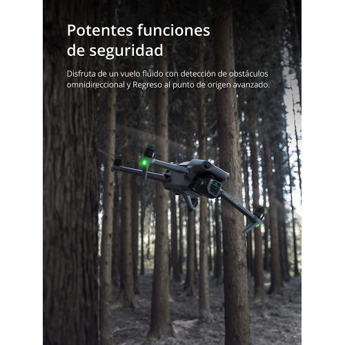 - Vuelo seguro - El dron con cámara DJI Mavic 3 está equipado con detección de obstáculos omnidireccional avanzada. Esto te permite volar con confianza y seguridad estés donde estés.