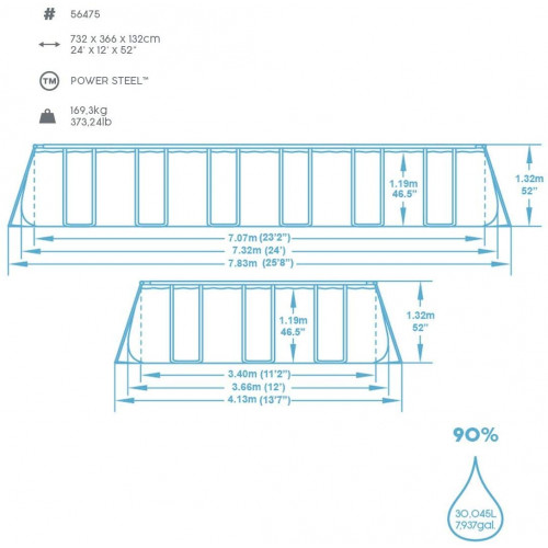 - Código de Producto: Bestway 56475 Piscina, Gris, 732 x 366 x 132 cm