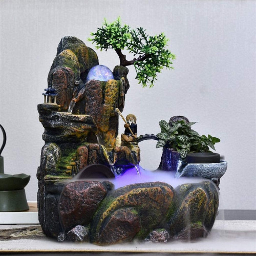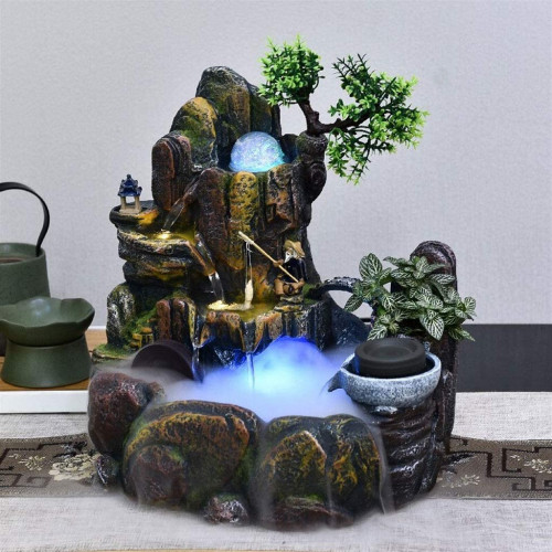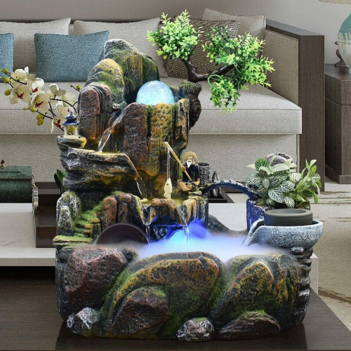 XQKQ Cascada de Escritorio, Fuente de Agua de Mesa Fuente de Mesa de Interior Cascadas de Roca simulada Cascadas y Pesca para Ancianos con humidificador atomizador Cuentas giratori