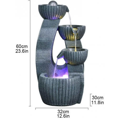 XQKQ Humidificador Creativo, Fuente de Agua de sobremesa Fuente de Agua de sobremesa para Interiores/Exteriores 4 Cuencos escalonados Fuente de Agua de Cascada para Mesa Escritor