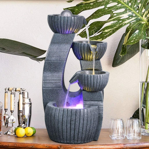 - La mini fuente de agua de sobremesa proporciona una relajante relajación y tranquilidad. Escuche los sonidos de una cascada de agua cayendo sobre los niveles de abajo mientras lo acunan suavemente o lo alivian del estrés. Es el mejor regalo para usted y sus amigos cercanos.