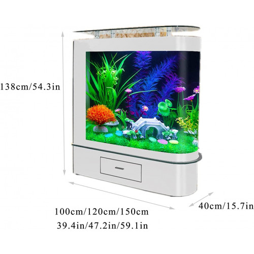 Pecera De Vidrio De Escritorio para Sala De Estar De Cabeza Redonda, Acuario Automático, Sin Cambio De Agua, Adecuado para La Sala De Estar De La Oficina En Casa, Pecera De Oro,Negro,120cm