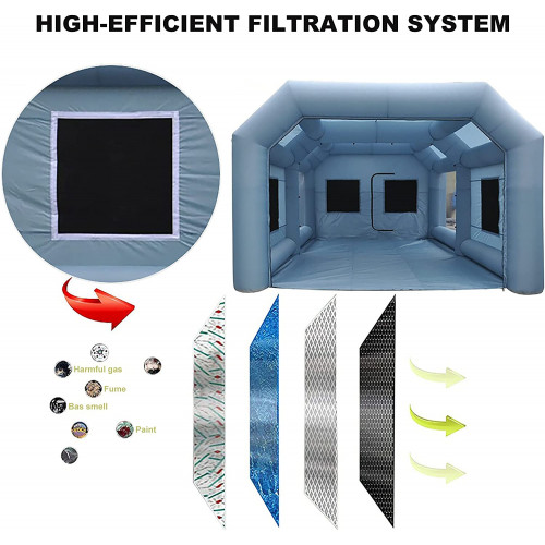 - ???? [Diseño de cabina más profesional] El diseño mejorado de la puerta delantera de la cabina de pintura portátil también facilita la entrada de personas y automóviles. El filtro de doble capa de dos etapas puede filtrar eficazmente sustancias nocivas, garantizar el entorno de trabajo de la pintura y reducir la contaminación por gases residuales.