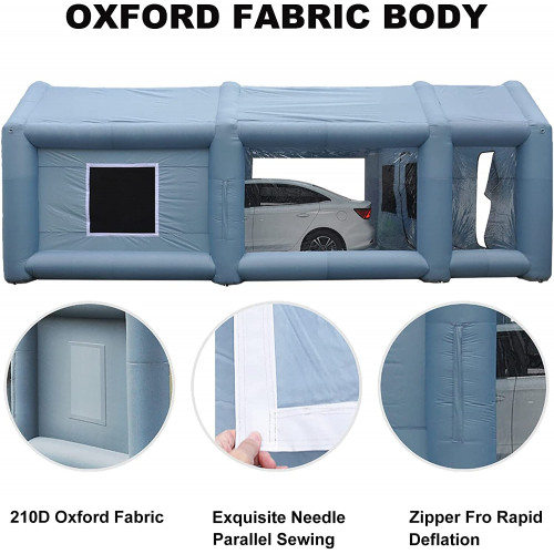Carpa de Cabina de Pintura Inflable de 32.8x16.4x11.5FT con sopladores de Alta Potencia mejorados 750W + 350W, Carpa de Cabina de Pintura Inflable Profesional con Sistema de Filtro