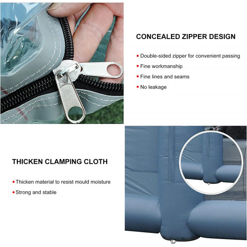 - [Carpa inflable más duradera] La carpa para automóvil está hecha de tela Oxford 210D de alta calidad, revestimiento de PU, alta resistencia, resistencia a la abrasión, buena resistencia al agua, peso ligero, resistencia a la flexión, antiestático. Se adopta la costura de refuerzo de doble hilo para extender la vida útil de la carpa de pintura en aerosol.