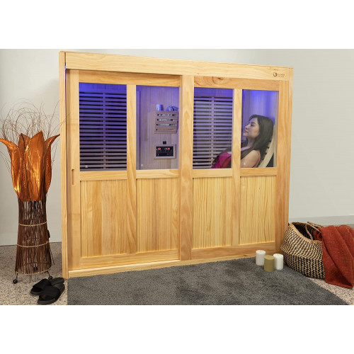 • PANEL DE CONTROL DIGITAL / USB (MP3) / RADIO / CROMOTERAPIA: Puede programar y/o modificar cómodamente la duración y la temperatura de cada sesión sin la necesitad de salir de la sauna. – Disfrute y relájese escuchando de su música favorita en formato MP3 desde un USB o escuche su emisora de radio habitual – Cromoterapia con 7 colores que ayuda a disfrutar al máximo del bienestar físico y emocional logrando un equilibrio del cuerpo y la mente
