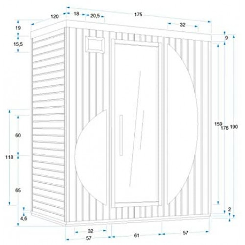 • Dimensiones (anchura x profundidad x altura): 175 x 120 x 190 cm