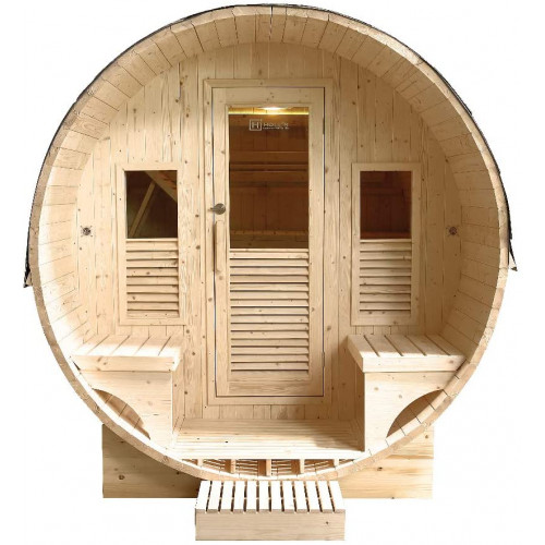 - Elimina la tensión del día y relájate al instante: esta sauna exterior proporciona calor seco. La tecnología de vapor se refiere a la que se crea cuando se añade agua a las piedras calientes de la estufa. Se expande rápidamente hasta 80 °C. El cuerpo caliente absorbe las tensiones del día y se relaja casi instantáneamente