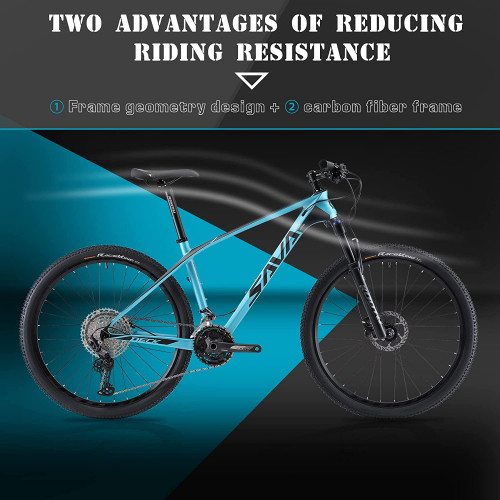 - El cuadro de carbono TORAY T800 le da a la bicicleta de montaña una estructura que es excepcionalmente fuerte y liviana. (12.4kg) Nota: este producto está libre de impuestos