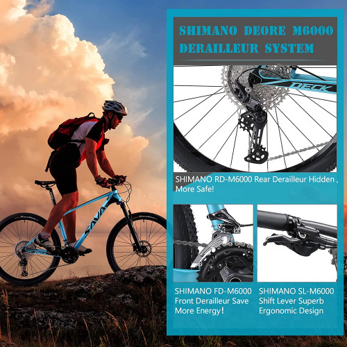 - Sistema de cambio trasero Shimano M6000 DEORE 3 * 10S: con el cambio delantero Shimano RD-M6000 y el cambio delantero Shimano RD-M6000, la conducción es simple y efectiva.