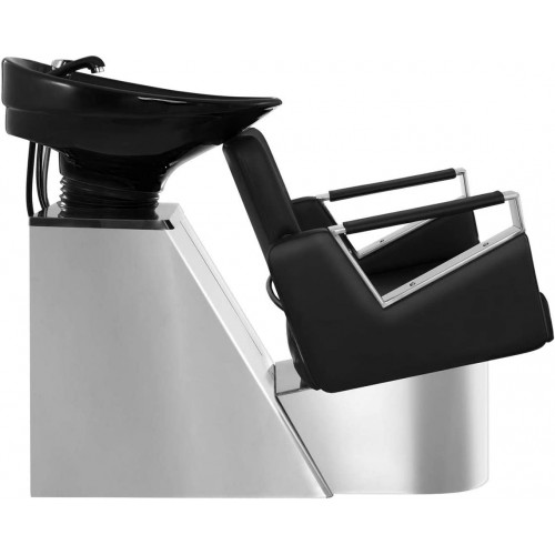 En el lavacabezas de peluquería SORRENT de Physa, tus clientes podrán reclinarse cómodamente y relajarse mientras les lavas la cabeza. Con este producto podrás hacer que la visita a tu peluquería sea una grata experiencia desde el primer momento y ofrecer a tus clientes el máximo bienestar en una posición agradable durante el lavado del cabello. Su cuerpo de acero robusto está cromado y une el sillón al lavabo de forma elegante. Los diversos componentes de este producto se pueden ajustar perfectamente para así permitir al cliente una relajada posición de descanso. El respaldo de 6 cm de ancho es ajustable y ofrece una superficie de apoyo no deformable de gomaespuma de alta calidad, forrada con ecopiel fácil de mantener y limpiar. Además, el ángulo del lavabo se inclina hasta 30 °, ajustándose así a la posición del respaldo de manera óptima. Los reposabrazos cromados con revestimiento blando de piel completan el moderno diseño del lavacabezas y ofrecen un extra de confort durante el lavado del cabello. El lavacabezas ofrece, con una anchura de 50,5 cm y una profundidad de 60 cm, suficiente espacio para un cómodo lavado de pelo. El lavabo está fabricado en cerámica de fácil mantenimiento y dispone de una cómoda concavidad para la cabeza. Al rededor de la cubeta hay un recubrimiento de silicona sobre el que el cuello reposa de forma agradable. Podrás retirar cubierta y limpiarla siempre que quieras. Al rededor del lavabo hay una manguera de ducha integrada, que también se puede retirar fácilmente para enjuagar. Gracias al grifo monomando, podrás regular el flujo de corriente de agua fácil y rápidamente, manteniéndo la temperatura constante.