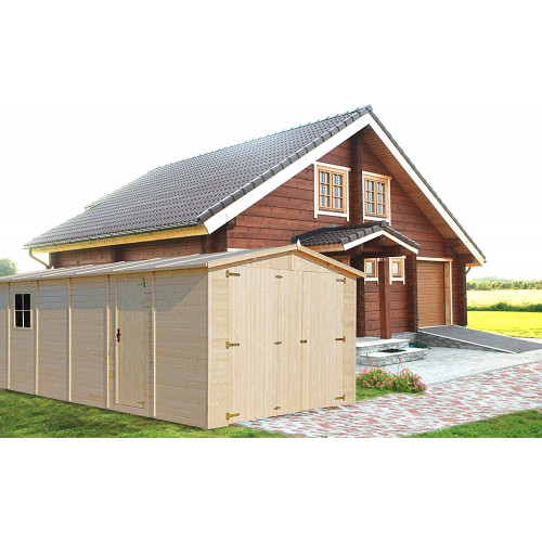 Garaje de Madera Natural - cobertizo en Pino / Abeto - A 295x10x5.10 cm / 50 m² - Construcción de Paneles - Taller de jardinería - Almacén para de automóviles, cobertizo para Herramientas-TIMBELA M102