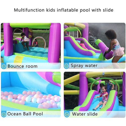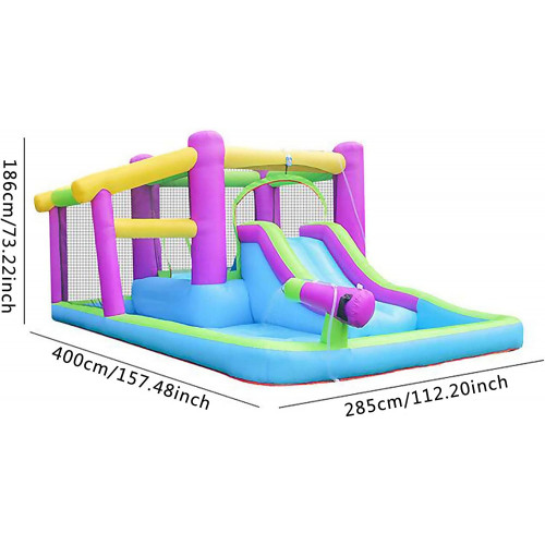 • Se acerca el verano, ¿quieres refrescarte todo el día? Nuestra piscina hinchable te puede ayudar, puedes pasar un agradable día fresquito en familia o con amigos, ¡no lo dudes! Gran regalo de verano para sus hijos, están listos para compartir un momento íntimo con un amigo de la familia. ➤ Detalles del producto: Material: lona de PVC y tela Oxford 420D Tamaño: 400 * 285 * 186 cm (13,1 ʹ × 9,35 ʹ × 6,1 ʹ) Capacidad: 1-3 niñosEdad aplicable: 3-8 añosVentilador (incluido): 450 vatios Accesorios: bolsa de mano, clavos de plástico, manual de instrucciones, película de reparación, soplador Inflado y desinflado: fácil de instalar y quitar en 1-2 minutos Función del producto: El producto tiene las funciones de saltar, deslizarse, taladrar, saltar, etc. Características: El diseño inflable Fácil de plegar y almacenar➤ Precauciones de uso en piscinas:1. Cuando usa el producto, se puede usar durante aproximadamente 15 minutos después del inflado para garantizar la seguridad. No utilice ningún producto que tenga fugas o esté dañado2. Antes de usar el producto, retire los objetos afilados o dañinos del área de uso para evitar pérdidas innecesarias3. Cuando se usa, se requiere la tutela y la guía del tutor.4. El tiempo máximo de uso del ventilador no puede exceder las 10 horas➤ Nota:1. Tenga en cuenta que habrá una pequeña diferencia de color debido a los diferentes monitores.2.