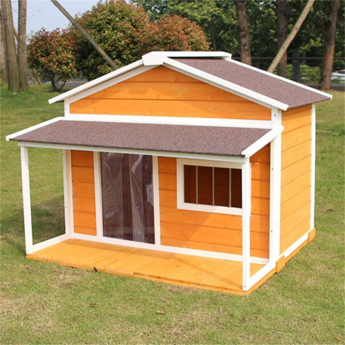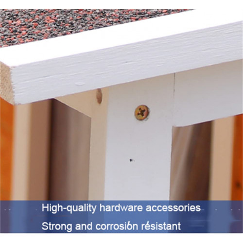 • Amplio Porche: Hay un hermoso y espacioso porche frente a la cabaña, L120*W110*H113cm, y el techo está cubierto con losas de asfalto. La gran plataforma proporciona suficiente espacio para que tu mascota se relaje, ideal para descansar o tomar una siesta en un día soleado.