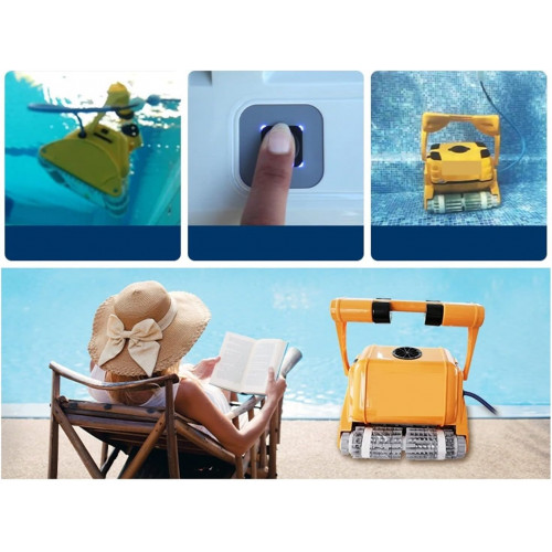 Un robot aspirador limpia la piscina por ti.Ideal para piscinas de inmersión sobre el suelo o en el suelo.Prepare su piscina para divertirse con este limpiador compacto fácil de usar