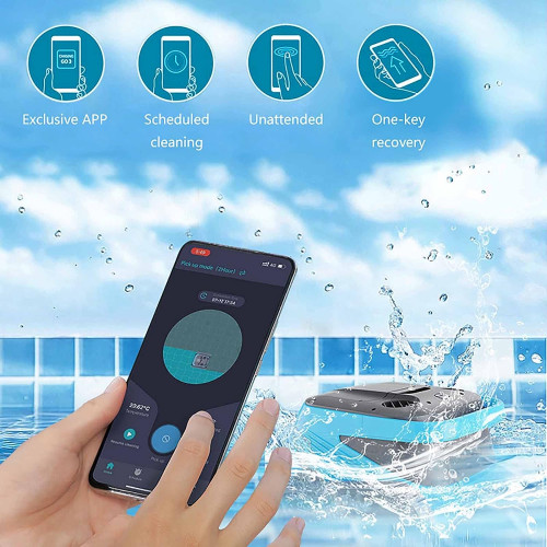 LANGTAOSHA Robot Limpiafondos, Aspirador De Piscinas Soporta Piscinas De Diferentes Formas, hasta 250 M², App Control, Trepa Paredes, Filtro 6L,18m [Clase de eficiencia energética A]