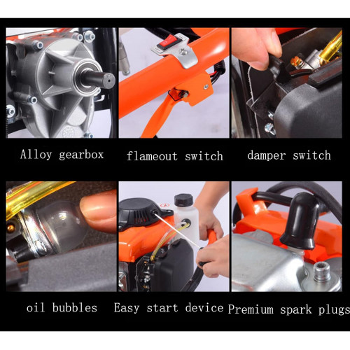 • 【Diseño ergonómico】</b>El motor de barrena está equipado con manijas de mariposa ergonómicas. Diseño de sistema de suministro de combustible fácil de arranque de retroceso manual, que puede realizar una acción de arranque rápido.