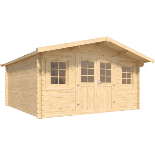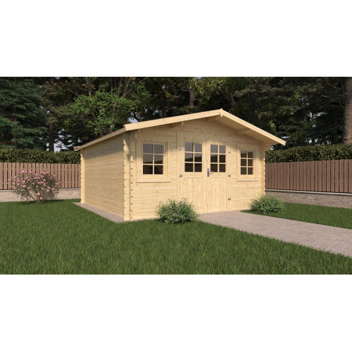 Forest Style - Cobertizo de Jardín Stelo Modern 14 m² (4,10 x 4,45 x 2,30 m) – Pino Silvestre – Techo de Fieltro Bituminoso – Ventanas Oscilobatientes – Puertas de Cristal – Cerradura Galvanizada