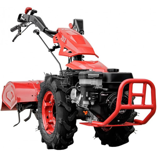 - Fresa incluida y ruedas robustas para mejor tracción y eficacia: La fresa incluida ofrece un ancho de trabajo de 65 cm, permitiendo labrar el suelo con eficiencia. Las ruedas neumáticas 500x10 aseguran excelente tracción y estabilidad, incluso en terrenos irregulares o con barro, facilitando el avance del motocultor en todas las condiciones.
