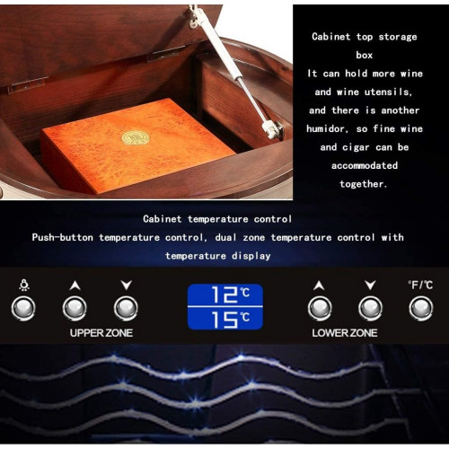• 【Seguridad y ahorro de energía】: la vinoteca tiene cableado estable, funcionamiento estable, refrigerante respetuoso con el medio ambiente, sin flúor, diferentes elementos de temperatura en diferentes rangos de temperatura, control de energía inteligente, modo de espera automático y ahorro de energía.