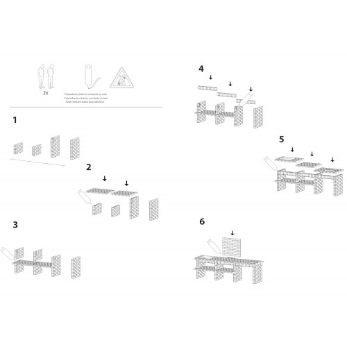 en hormigón refractario gris y ladrillo naranja. Incluye parrilla