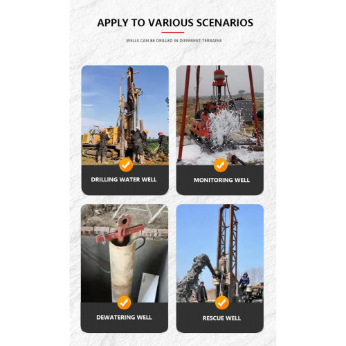 Perfecta para aplicaciones residenciales, agrícolas e industriales, esta máquina es altamente adaptable y se puede utilizar para una amplia gama de proyectos de perforación, desde pozos de agua residenciales hasta sistemas de riego agrícola a gran escala.
