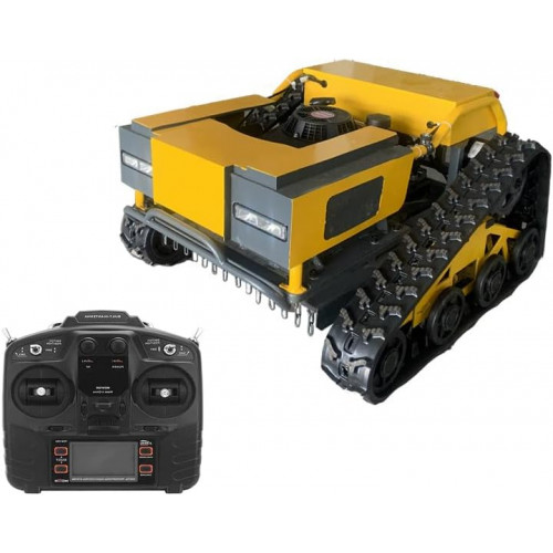 Cortacésped con control remoto y desbrozador de gasolina