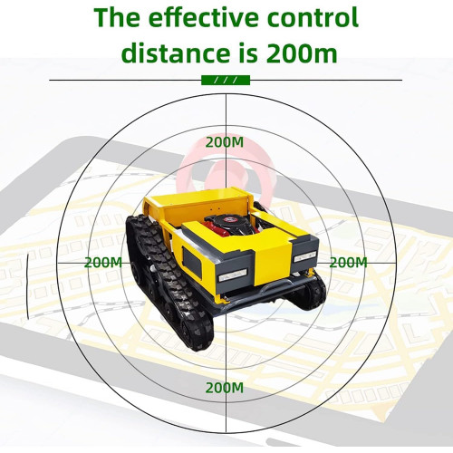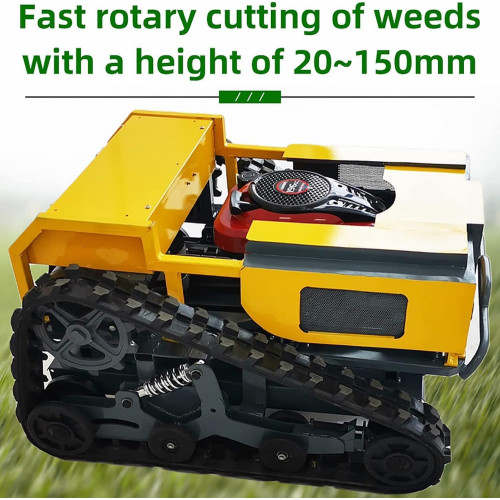 El cortacésped con control remoto está diseñado para mayor eficiencia y comodidad, con un robusto motor 4-S de un solo cilindro de cuatro tiempos (OHV) con una potencia de salida de 4,2 kW a 3600 rpm. Sus dimensiones son de 1000 x 820 x 600 mm, por lo que es adecuado para varios tamaños de césped. Equipado con una batería de 24 V/12 Ah y motores duales de 24 V/500 W, garantiza un rendimiento fiable. El modo de conducción sobre orugas y la dirección diferencial proporcionan una excelente maniobrabilidad. Ajusta la altura del rastrojo de 0 a 150 mm y disfruta de un rango de corte de 550 mm. Con una distancia de control remoto de hasta 200 metros, puedes operarlo cómodamente desde una distancia. El modo de resistencia híbrido de gasolina y eléctrico y una capacidad del tanque de combustible de 1,5 L ofrecen un tiempo de funcionamiento prolongado. El arranque es fácil con la función de inicio de un botón. El paquete incluye 1 host y 1 mando a distancia, listo para tus necesidades de cuidado del césped.