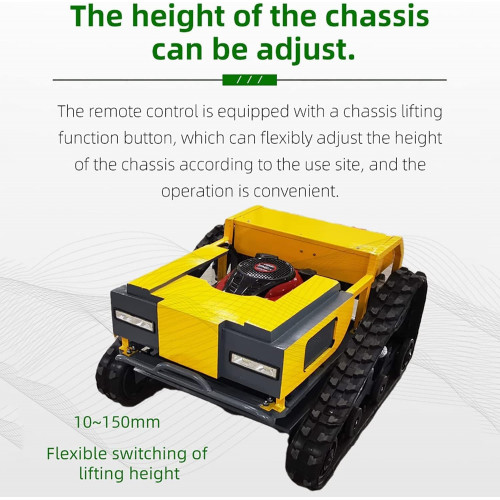 - Chasis ajustable: la altura del chasis es ajustable, lo que permite la idoneidad en más terrenos. Ofrece una fuerte aleatoriedad en el corte y la libertad de ajustar la altura del césped, proporcionando flexibilidad en el paisajismo.