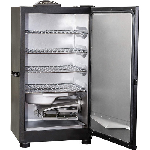 El ahumador eléctrico digital Masterbuilt MES 130B es perfecto para principiantes o profesionales. Obtendrás resultados listos para la competencia en tu propio patio, sin la molestia de carbón o propano. Simplemente conecte este ahumador, configura los controles digitales y hace el trabajo. El cargador patentado lateral de madera te permite experimentar con sabor sin abrir la puerta del ahumador. Cuatro estantes cromados proporcionan un montón de espacio para fumar hasta 6 pollos, 2 pavos, 4 estantes de costillas o 4 botones de cerdo. Domina el arte de fumar con Masterbuilt.