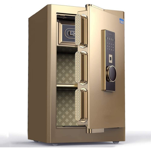 Caja fuerte resistente al fuego para proteger medios digitales, documentos importantes y otros objetos de valor contra robo e incendio.