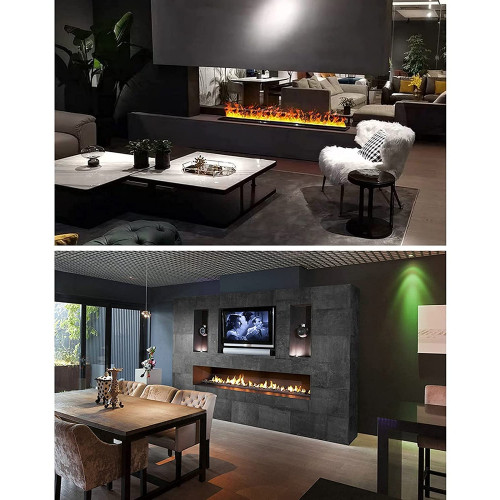 - EFECTO DE LLAMA LED REALISTA: las luces de intensidad ultra alta proporcionan efectos de llama realistas, que se reflejan en los leños de fuego falso realistas con un efecto de llama realista mediante la tecnología de llama 3D. El efecto llama también se puede controlar, lo que hace que nuestra chimenea sea una chimenea decorativa con gran fuego o pequeño efecto fuego en todo tu invierno. (No produce calor. )