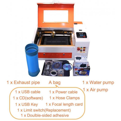- ★ Aplicación: Área de grabado: 11.8 "x 15.7"(300mm x 400mm). Capaz de grabar en la mayoría de los materiales, como tabla de densidad, PVC, cuero, tela, papel, placa de doble color, bambú, plástico, vidrio, tela etc., pero no en los metálicos.