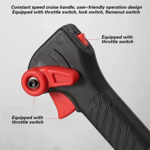 - Equipado con interruptor del acelerador, interruptor de bloqueo, el interruptor del apagado, no hay necesidad de prensa durante mucho tiempo, un ajuste cómodo y una operación simple.Con gran tanque de aceite de capacidad que puede añadir aceite de mezclado, la proporción es de 25 (gasolina): 1 (aceite de motor).