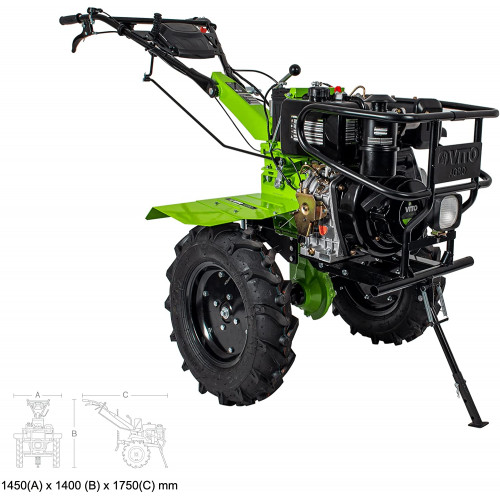 - Vito - Motoazada de un solo eje (12 CV, motor diésel, arado y cuchilla, accionamiento directo, 145 cm de ancho, hasta 30 cm de profundidad, 3 marchas: 2 hacia delante y 1 marcha atrás)