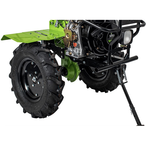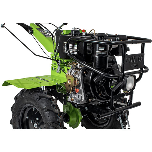 El remolcador de un solo eje de 12 CV de Vito está diseñado para el funcionamiento intensivo y a largo plazo de clientes comerciales o ambiciosos, equipado con un motor diésel de alto rendimiento cuya eficiencia responde a grandes volúmenes de trabajo. Acabado macizo que incluye un engranaje directo lubricado en baño de aceite. El dispositivo es compatible con todos los dispositivos de 16 mm. A través del cigüeñal se pueden utilizar dispositivos de cultivo como cortacésped giratorio o bomba de agua.