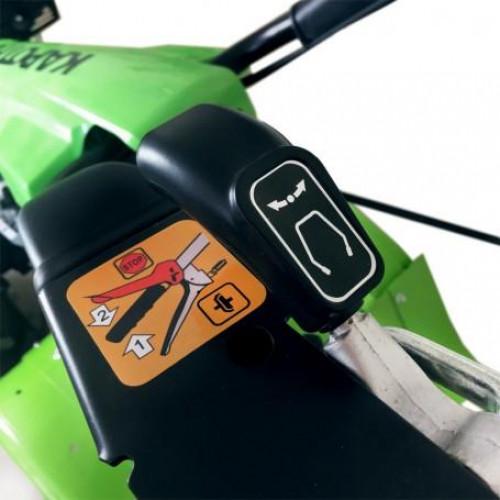 Gracias a su gran depósito de combustible, de 6.5 litros, podremos trabajar sin preocupaciones, ocupándonos únicamente de realizar nuestra labor de la mejor manera. Además, podremos ejecutar la puesta en marcha de la máquina rápidamente con su arranque eléctrico incorporado y al cebador de arranque fácil incluso en frío.