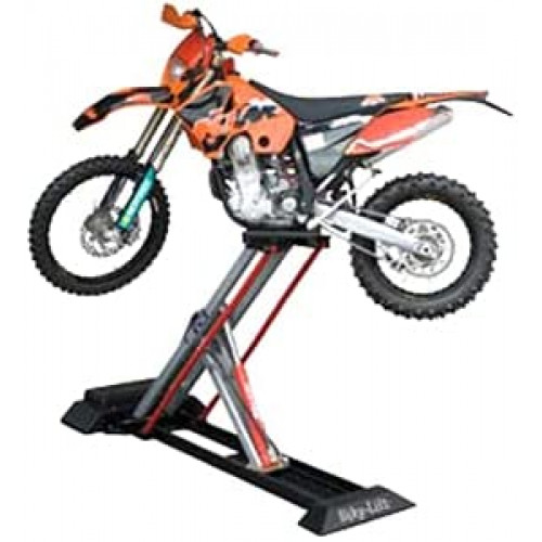 Elevador de Quad/ATV. Bomba electro-hidráulica.Entre los elevadores especiales desarrollados por Bike-Lift, el Kodiak 500 es sin duda el más innovador. La mecánica y las características de la plataforma de elevación, las dimensiones máximas y la posibilidad de girar de 360° el vehículo, hacen de este el elevador la mejor solución para aquellos que trabajan normalmente el Off-Roads, Supermotard y Quad/ATV. Permite la máxima libertad para el operario, que puede trabajar el vehículo desde cualquier posición, más eficaz y ahorrando tiempo.Capacidad de carga max.: 500kg.Altura de elevación max.: 130cm.Superficie útil de la base: 45x33cm.Peso total del elevador: 110kg.Voltaje bomba electro-hidráulica: 230V-50Hz.Potencia bomba electro-hidráulica: 1.1kW.Interruptores: Manuales.