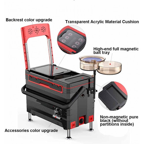 FFYUE Caja De Pesca Multifuncional, Equipo De Pesca Integrado con Silla, Almacenamiento De Gran Capacidad para El Equipo De Pesca Sin Instalación, Equipo De Caja Ultraligero