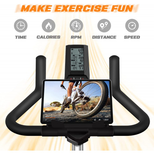 - Entrenamiento científico: el monitor LCD rastrea tu tiempo, velocidad, RPM, distancia, calorías quemadas y odómetro mientras estás en bicicleta. El soporte para iPad te permite ver videos de ejercicio o disfrutar de música cuando conduces. Jaula de botella bien adjunta, lo que te permite mantenerte hidratado después de sudar.