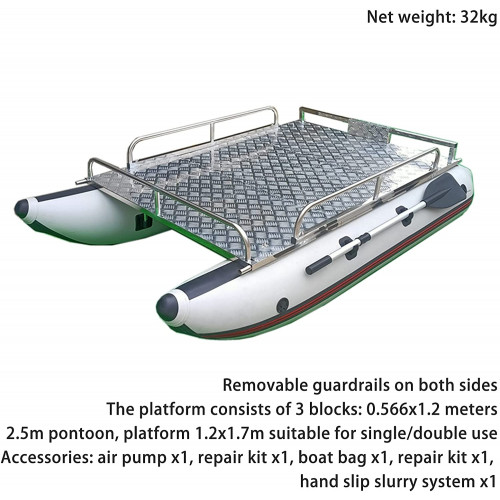 - [Plataforma inflable grande] El muelle inflable tiene una boya de 2,5 my una plataforma de 1,7x1,2 m, que puede acomodar a 1 ± 1 personas y pesa alrededor de 32 kg; como resort flotante, ¡disfruta de tu tiempo feliz!