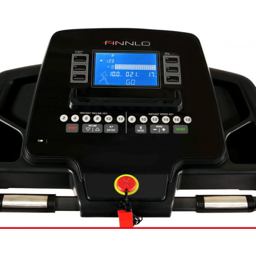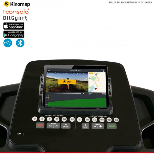 - 6 teclas de marcación rápida para velocidad e inclinación, control táctil de 2 niveles para velocidad y pendiente directamente en el mango