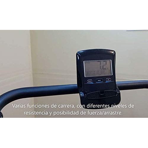 Cinta de correr curva, Curve Treadmill Magnética Mod. CA-T07 Medidas CINTA: 1780 x 845 x 1520 mm. (alto) Medidas EMBALAJE: 1910 x 930 x 570 mm. (alto) Zona de carrera: 1700 x 440 mm. Peso máximo usuario: 170 kg. No requiere conexión eléctrica. No precisa lubricacion. La cinta dispone de zapata Magnética Programas de entrenamiento Consola Display , con información de velocidad, calorías, distancia . Peso Maquina 180 Kg.