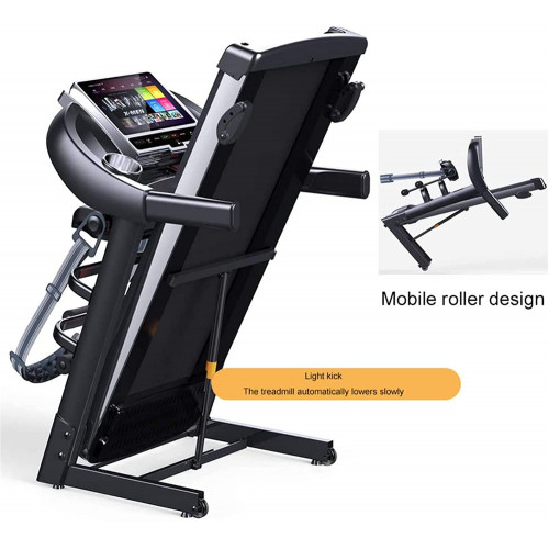 FHW Cinta De Correr EléCtrica, MáQuina para Caminar MultifuncióN, Plegable HidráUlico, Velocidad De Pendiente De Tres Velocidades Ajustable, Adecuada para Fitness Y Quema De Grasa,Negro