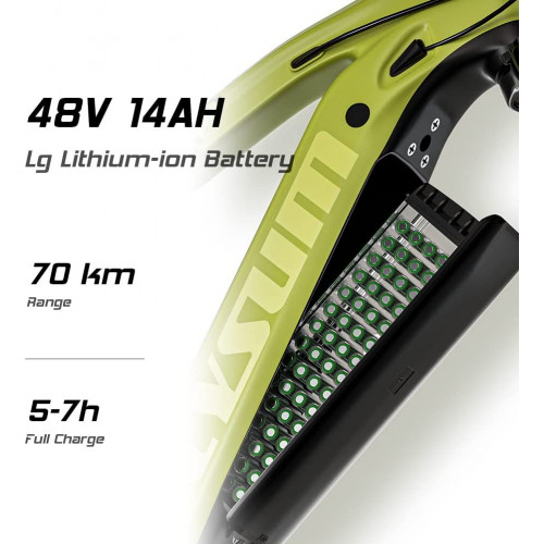 cysum CM520 Bicicleta eléctrica para Hombre, Bicicleta de montaña eléctrica para Adultos de 29", Bicicleta de montaña de Carretera Shimano 7 Speed, llanta de una Pieza, Freno Disco hidráulico