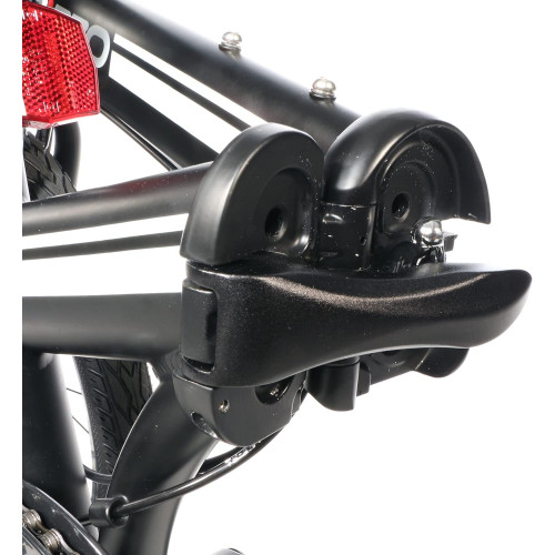- Pedales plegables de resina, sillín más ancho y cómodo y receptor magnético para sujetar el marco plegado de forma segura.