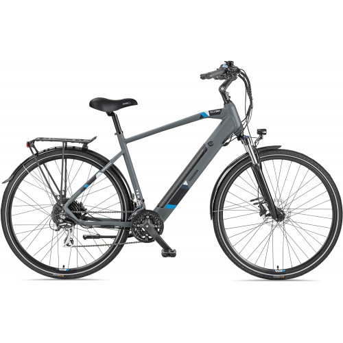 La bicicleta eléctrica con motor eléctrico y tracción trasera alcanza una velocidad de 25 km/h. La batería de iones de litio integrada en el marco es duradera y duradera. El rango máximo es de hasta 100 km dependiendo de la intensidad. Para cargarlo, se puede quitar fácilmente del soporte.