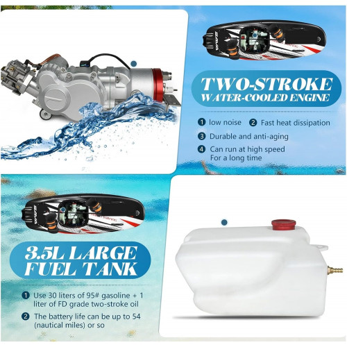 JOJIDE Tabla de Surf eléctrica, Tabla de Surf de Fibra de Carbono, Tabla de Surf con Motor de Combustible, Tabla de Surf Ligera de Alta Velocidad con Motor de 110cc para Tablas de Surf